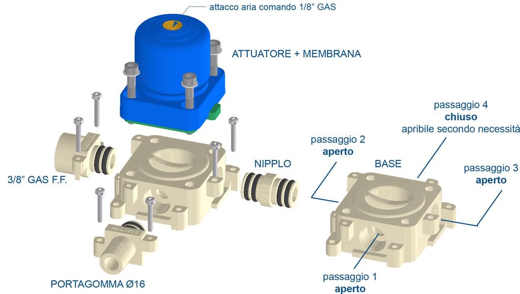 Cod. F.038.054 Valvola MANIFOLD con base PP - Molla attuatore Tipo 3 - Membrana in MVQ